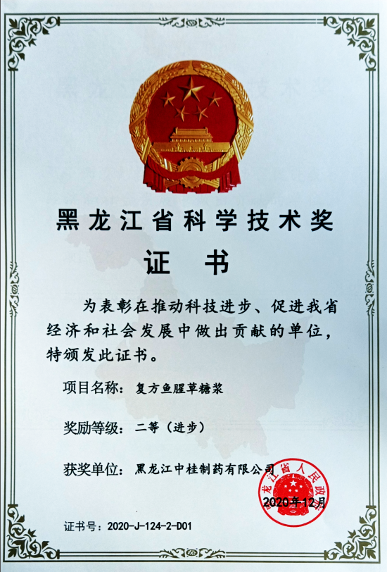 “复方鱼腥草糖浆”研究项目获黑龙江省