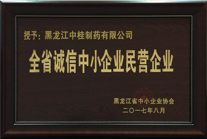 中桂制药荣获“全省诚信中小企业民营企业”,“黑龙江省中小企业创新先锋人物”称号